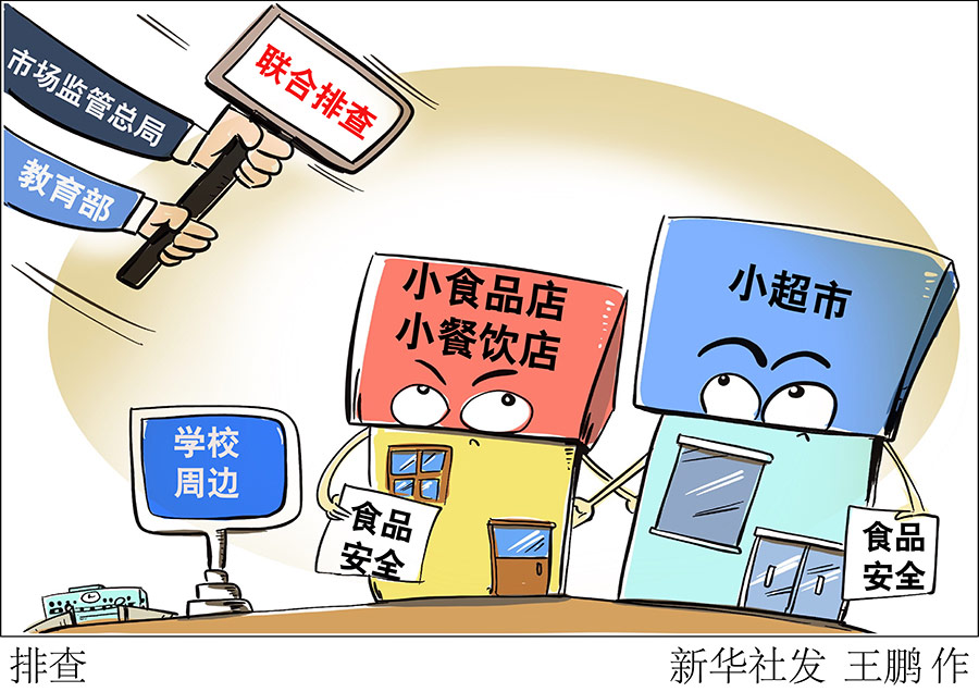 通知要求,各地市场监管部门以学校食堂、学生集体用餐配送单位和学校周边的小超市、小食品店、小餐饮店等为重点单位,以畜禽肉及肉制品、蛋及蛋制品、乳制品、食用油等大宗食品原料及“五毛食品”等为重点品种,以食品进货查验、食品贮存、食品加工制作、餐饮具清洗消毒、食品留样等为重点行为,加大监督检查工作力度。