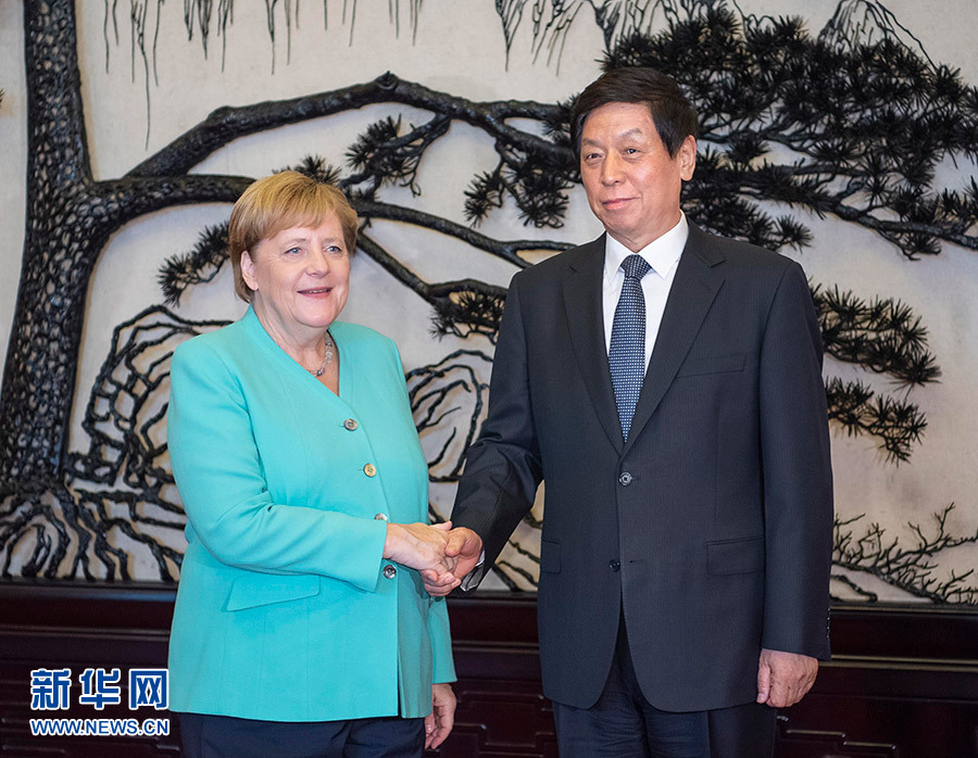 在会见默克尔时,栗战书表示,此次是总理女士任内第十二次访华,充分体现了你对发展两国关系的高度重视。德国是中国在欧洲重要的合作伙伴,中德经贸合作给两国企业和民众带来了看得见、摸得着的实惠。中国全国人大高度重视通过立法营造营商环境,今年通过的《外商投资法》,进一步为外国企业在华发展提供了有力法治保障。希望德方在投资审查、市场准入等方面给予中国企业公平待遇。中国全国人大愿同德国联邦议院加强各层级交往,增进相互了解与合作。