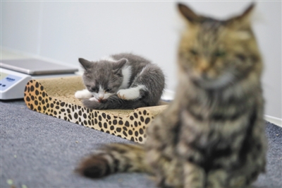“大蒜”和她的“妈妈”形影不离。代孕猫妈妈是一只中华田园猫,生育的“大蒜”则是英短猫。