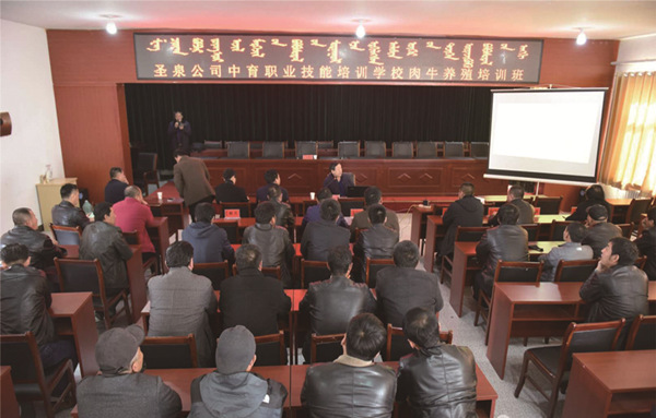 图为翁牛特旗脱贫攻坚联合党委的就业扶贫党支部协调圣泉公司中育职业技能培训学校为乌丹镇白音汉村的村民进行职业技能培训。