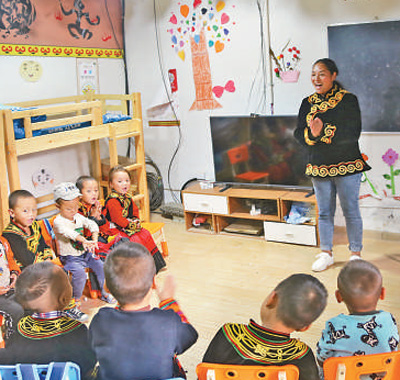 9月7日,甲拉曲西带着孩子们读课文。俄底科日摄(人民视觉)