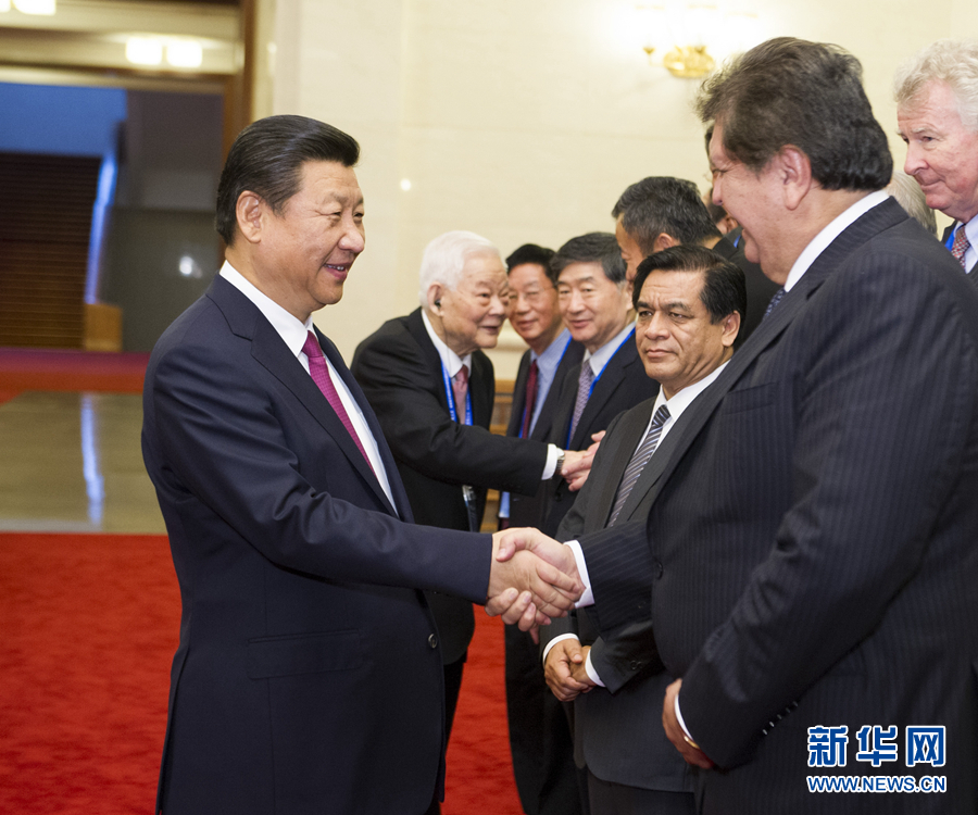 2014年9月24日,国家主席习近平会见出席纪念孔子诞辰2565周年国际学术研讨会暨国际儒学联合会第五届会员大会开幕会的部分外宾和国际儒学联合会负责人。叶选平同志参加会见。 新华社记者 黄敬文 摄