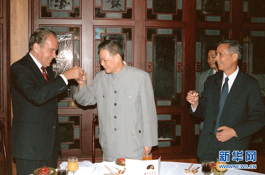 1985年9月8日,叶选平同志在广州宴请美国前总统理查德·尼克松。 新华社记者 齐铁砚 摄