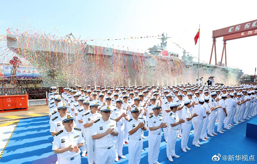 9月25日上午,中国海军首艘两栖攻击舰下水仪式在上海举行。