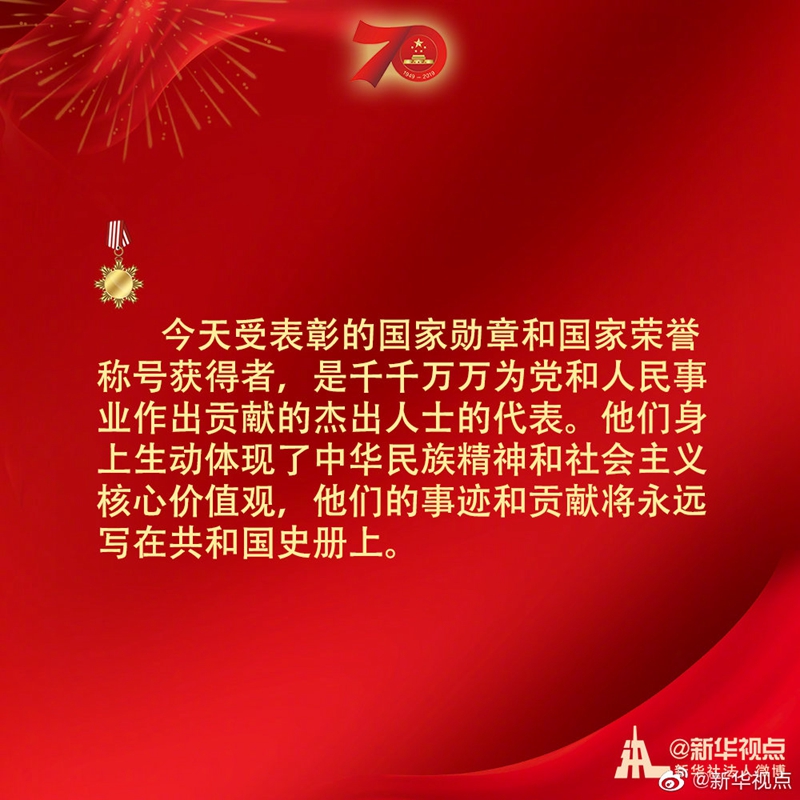 习近平在国家勋章和国家荣誉称号颁授仪式上的重要讲话金句↓