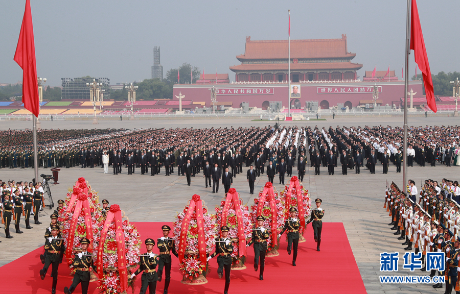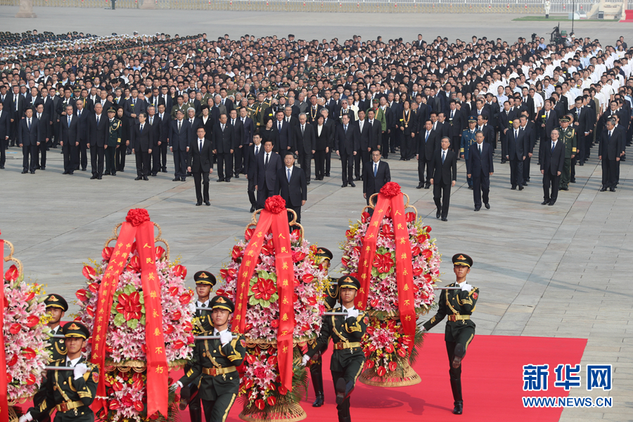 新华社北京9月30日电(记者杨维汉、罗沙)在庆祝中华人民共和国成立70周年之际,烈士纪念日向人民英雄敬献花篮仪式30日上午在北京天安门广场隆重举行。习近平、李克强、栗战书、汪洋、王沪宁、赵乐际、韩正、王岐山等党和国家领导人,同各界代表一起出席仪式。