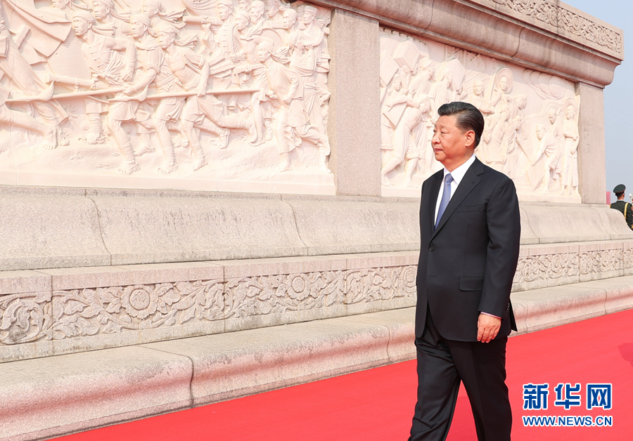 接着,习近平等党和国家领导人缓步绕行,瞻仰人民英雄纪念碑。巍峨的纪念碑,无声讲述着中华民族近代以来激昂豪迈、气吞山河的奋斗历程。碑身上的10幅汉白玉浮雕,彰显中国人民百折不挠、自强不息的伟大精神。