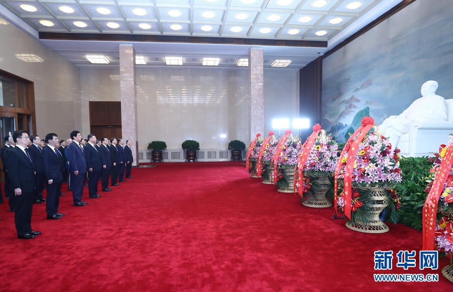敬献花篮仪式前,习近平、李克强、栗战书、汪洋、王沪宁、赵乐际、韩正、王岐山等领导同志来到毛主席纪念堂。北大厅内,中共中央,全国人大常委会,国务院,全国政协,中央军委,各民主党派、全国工商联和无党派爱国人士敬献的花篮摆放在毛泽东同志坐像正前方。习近平等向毛泽东同志坐像三鞠躬,随后来到瞻仰厅,瞻仰毛泽东同志遗容,表达对毛泽东同志等老一辈革命家的深切缅怀。