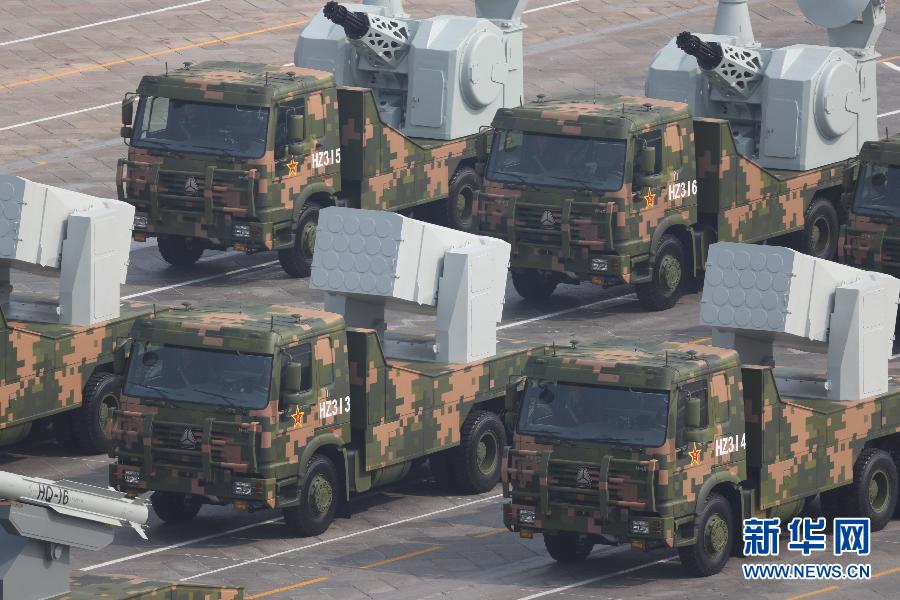 10月1日上午,庆祝中华人民共和国成立70周年大会在北京天安门广场隆重举行。这是舰载防空武器方队。新华社记者 江宏景 摄