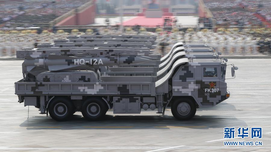 新华社北京10月1日电(记者张玉清、张汨汨)8辆红旗-12A地空导弹发射车和4个红旗-6A弹炮系统火力单元组成的地空导弹第2方队,10月1日通过天安门接受检阅。方队领队是朱瑞少将、董玉江少将。