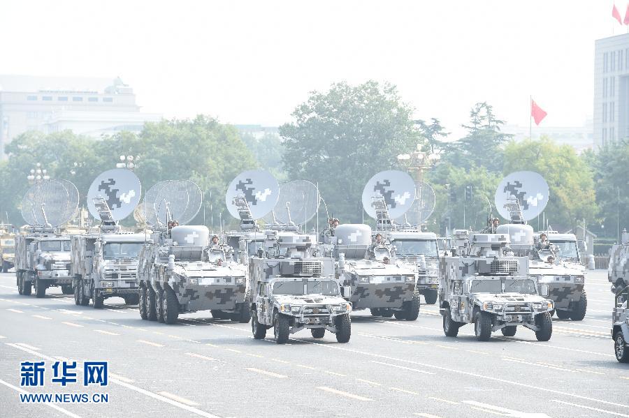 10月1日上午,庆祝中华人民共和国成立70周年大会在北京天安门广场隆重举行。这是受阅的信息作战第3方队。新华社记者 张国俊 摄