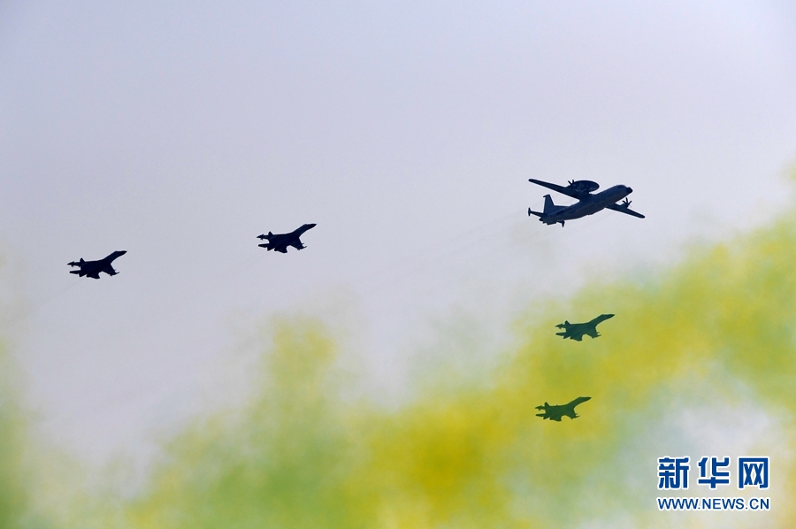 新华社北京10月1日电(张玉清、周正新)随着15架飞机编成的3个5机楔队依次飞越天安门广场上空,预警指挥机梯队1日上午光荣接受祖国和人民检阅。
