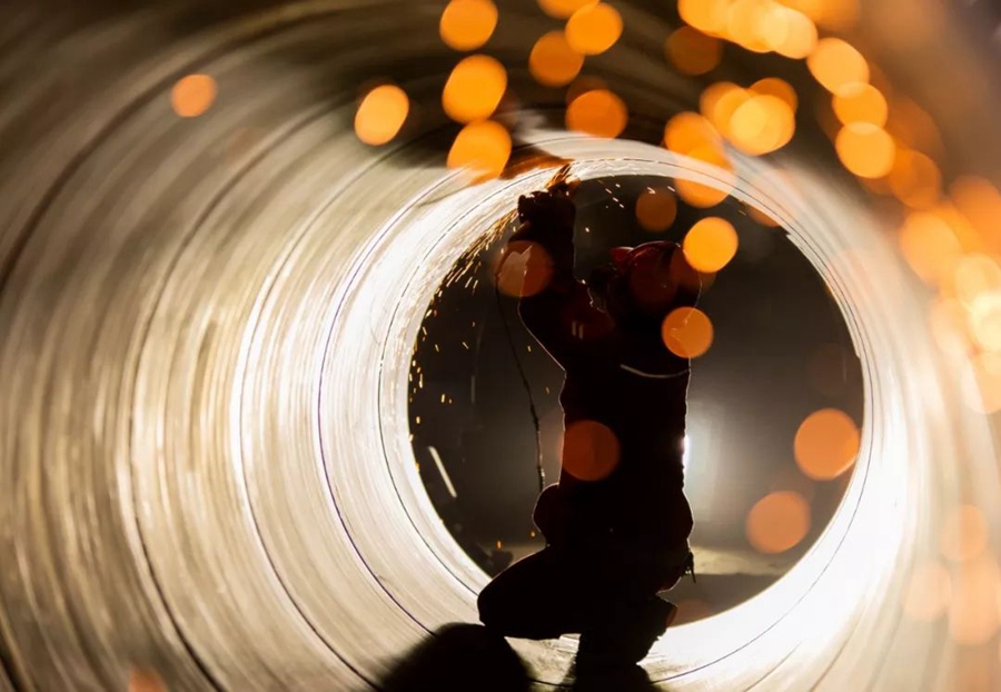 9月20日,河北秦皇岛。工人正在维修钢管。作者:王金磊
