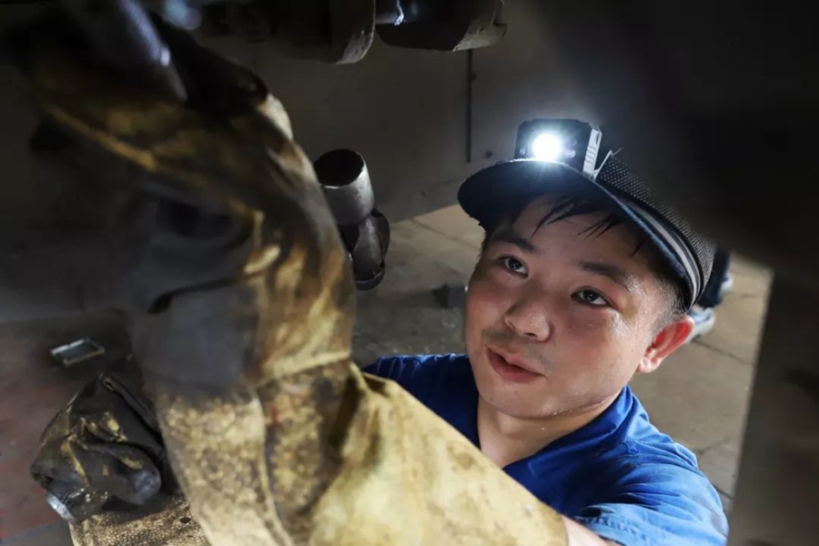 7月19日,江西南昌。铁路职工正在检修车辆。作者:享逍遥
