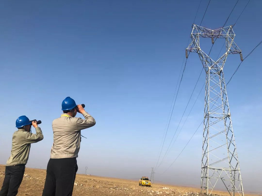10月1日,内蒙古锡林郭勒盟。电业局输电工人正在巡视输电线路。作者:雨濛