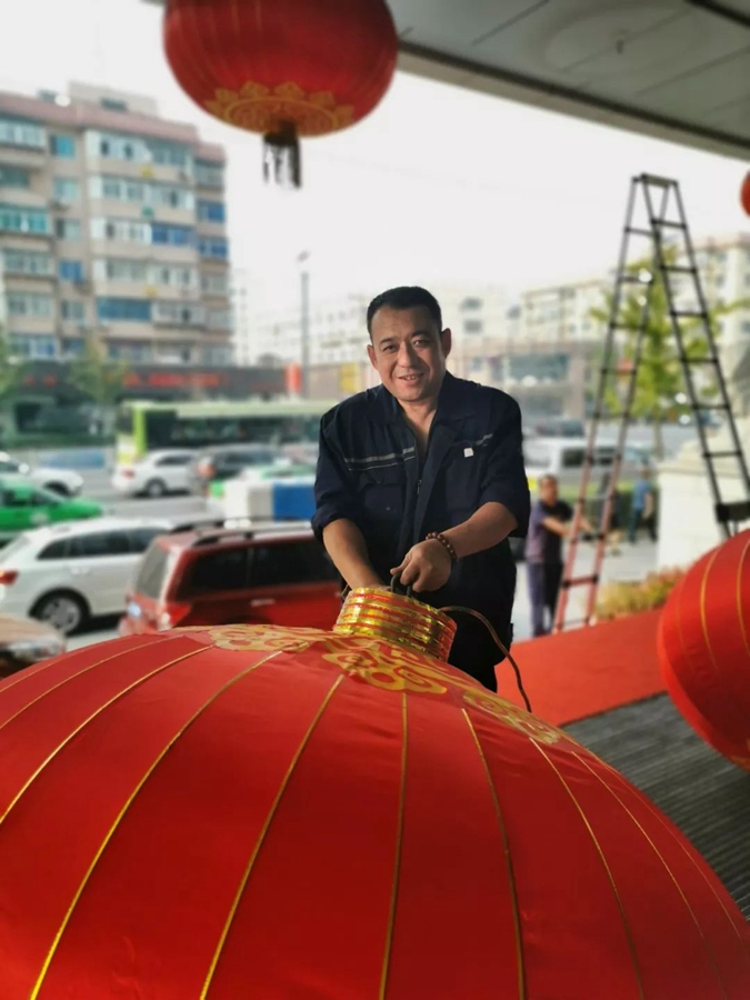 9月30日,辽宁。挂红灯笼的工人师傅。作者:吹雪