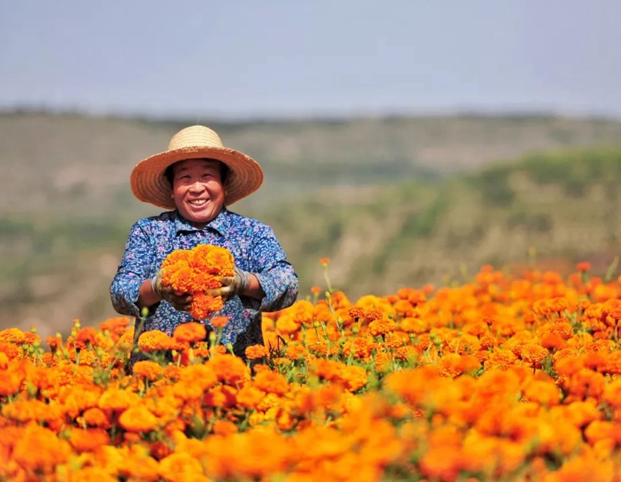 9月12日,宁夏彭阳。种植万寿菊,不仅发展了旅游业,也让当地老百姓过上了好日子。作者:瑾