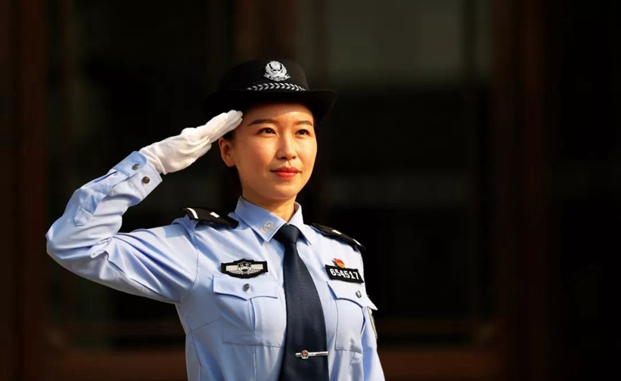 10月2日,辽宁锦州。女警在执勤。作者:往事如风