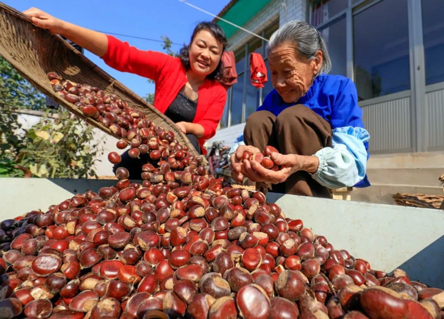 8月23日,河北遵化。侯家寨乡大屯村农民怀着喜悦的心情收获板栗。作者:天下人