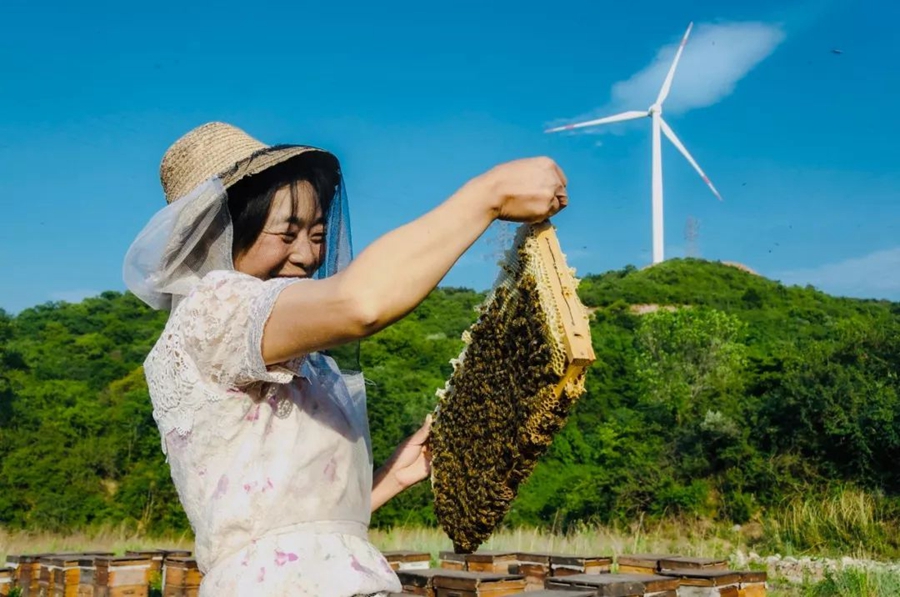 6月10日,山西晋城。一名蜂农收获蜂蜜。作者:知易