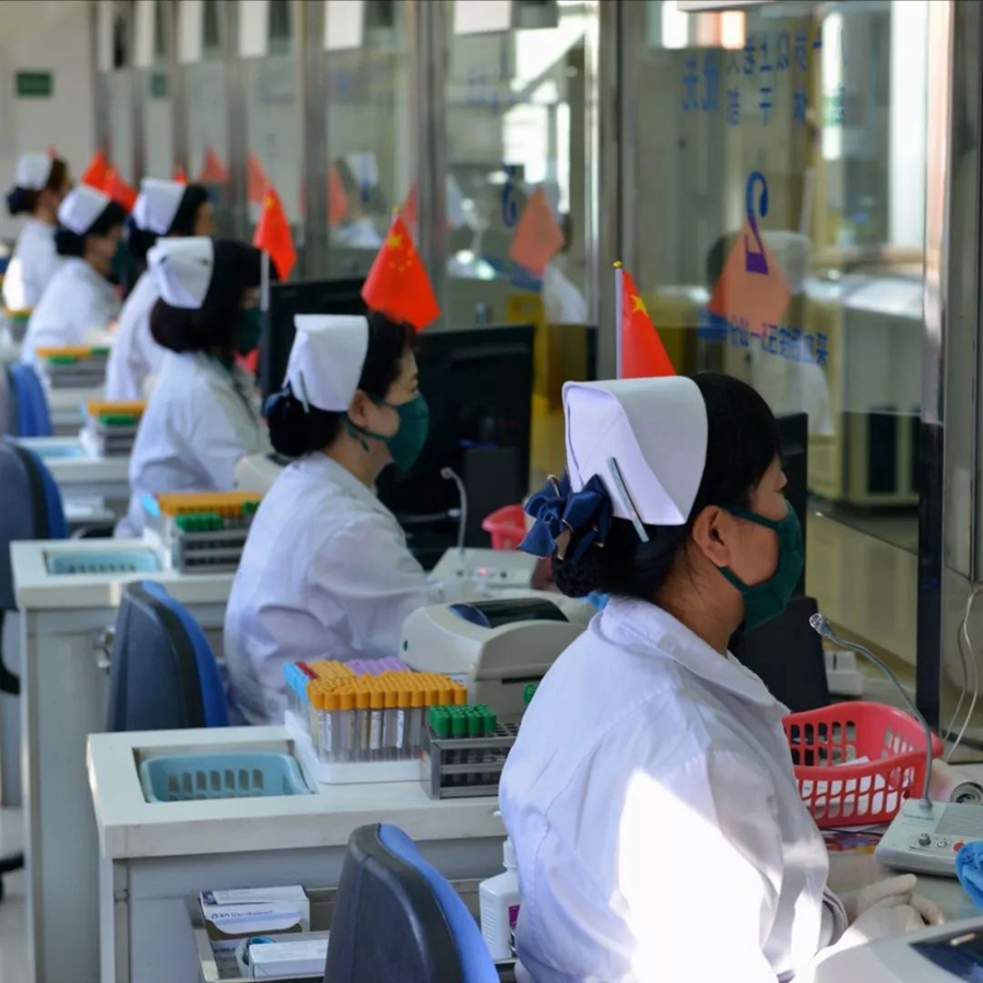 10月2日,辽宁沈阳。采血中心的护士们国庆期间依然坚守岗位。作者:董志光