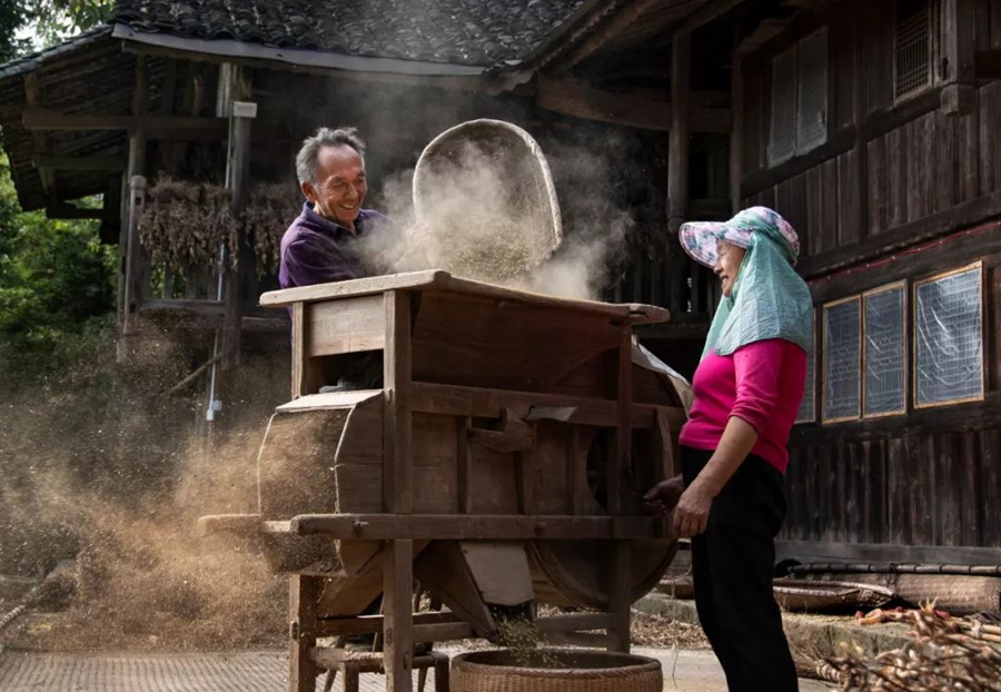 9月30日,湖北随州。白果村一对夫妇在自家院落里忙碌。作者:大彭