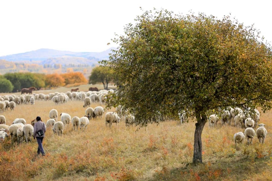 9月24日,内蒙古赤峰。牧民在乌兰布统草原放羊。作者:瑞钟