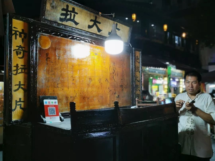 8月21日,浙江杭州。清河坊街的手艺人准备表演拉大片。作者:一匹马