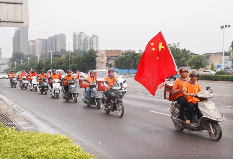 7月15日,山西临汾。外卖小哥正在送餐。作者:秋天的枫叶