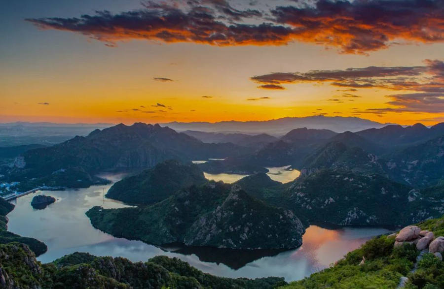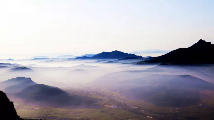2019年9月1日,辽宁凌源。晨曦中的木兰山朝霞披彩、云海翻腾。作者:阿涛