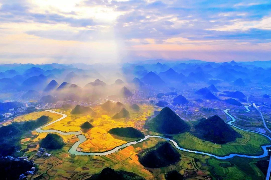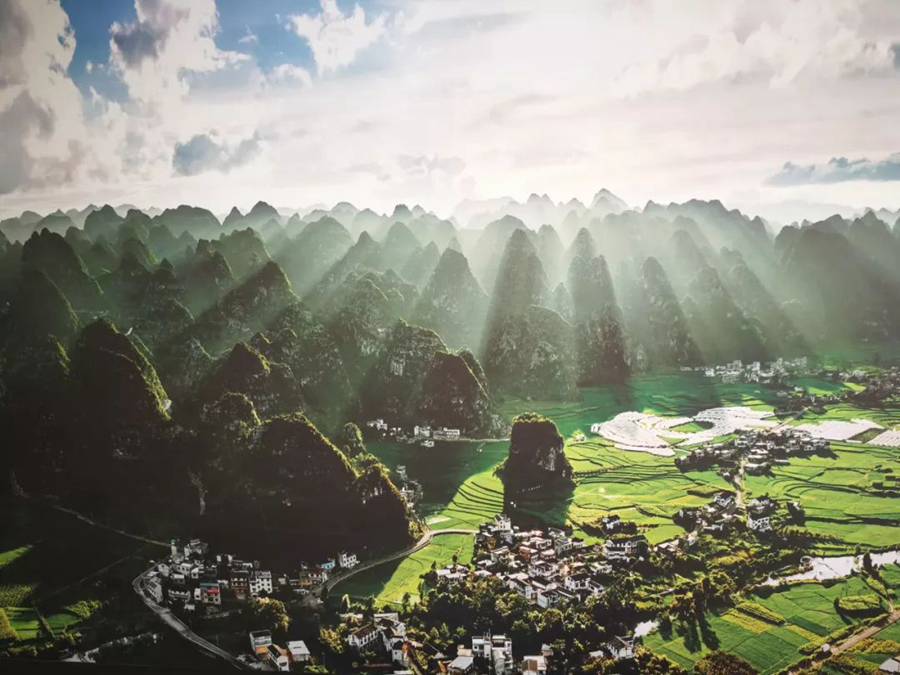 2019年10月4日,贵州兴义。阳光穿过云层,照耀在绿色的大地上。作者:Vincent