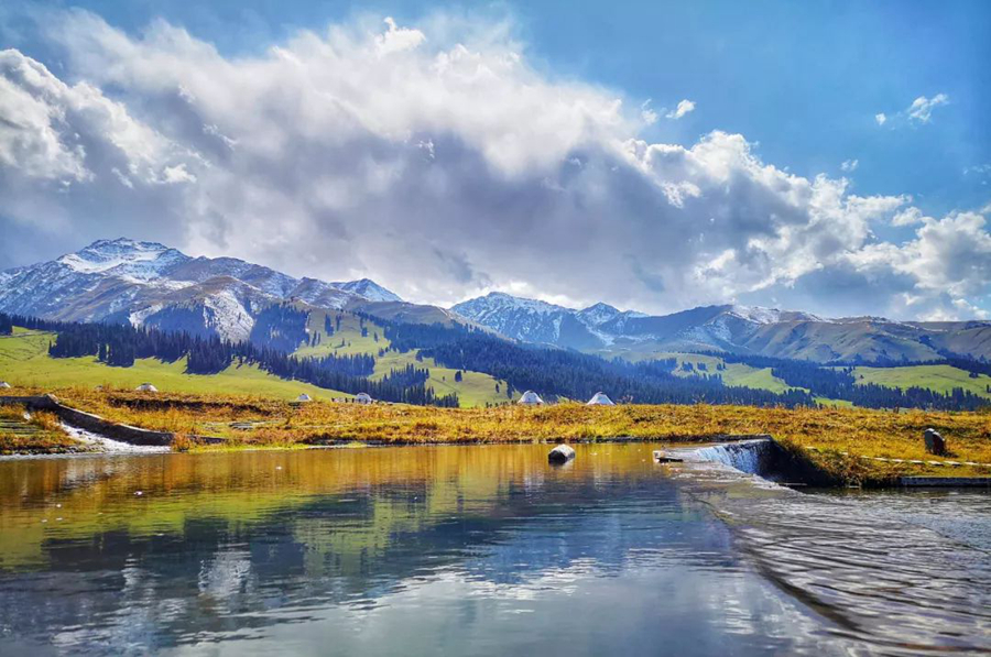 2019年9月13日,新疆伊犁。雪山、草原与小河。作者:武超