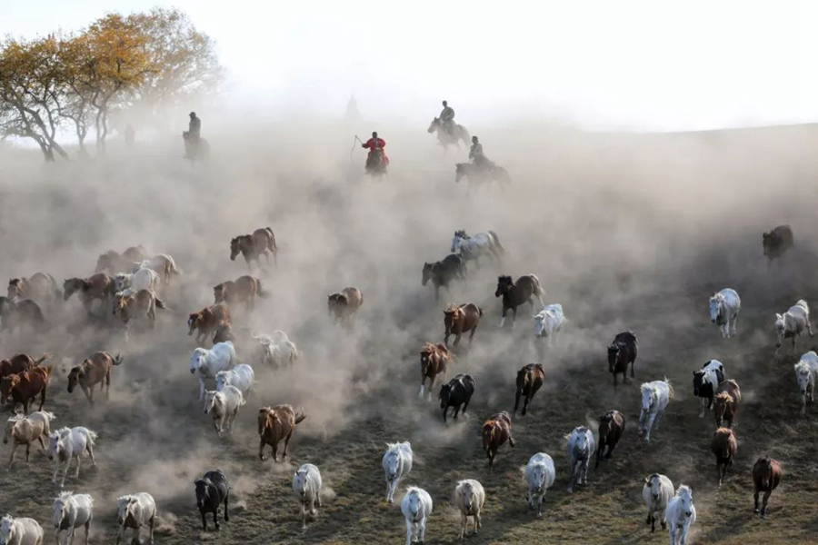 2019年9月24日,内蒙古赤峰。乌兰布统草原上群马奔驰。作者:瑞钟