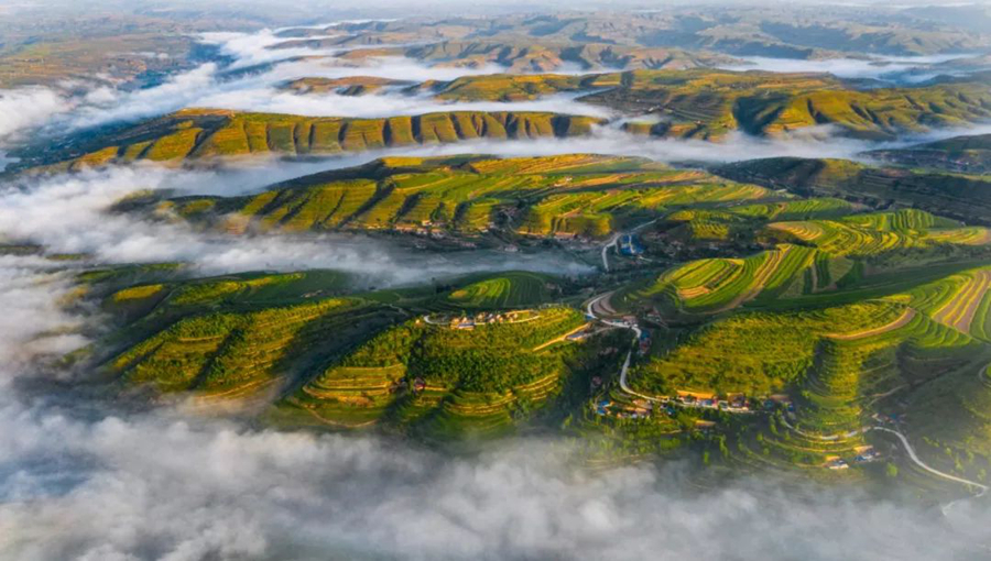 2019年9月4日,甘肃兰州。初秋雨后的梯田。作者:lao唐