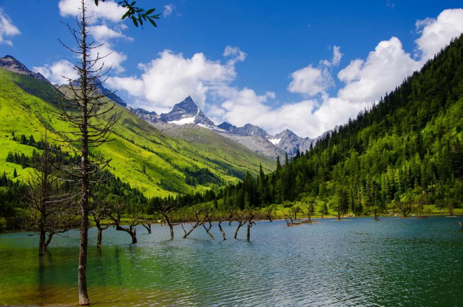 2019年8月10日,四川阿坝藏族羌族自治州。蓝天白云与雪山相互映衬。作者:wsjiran