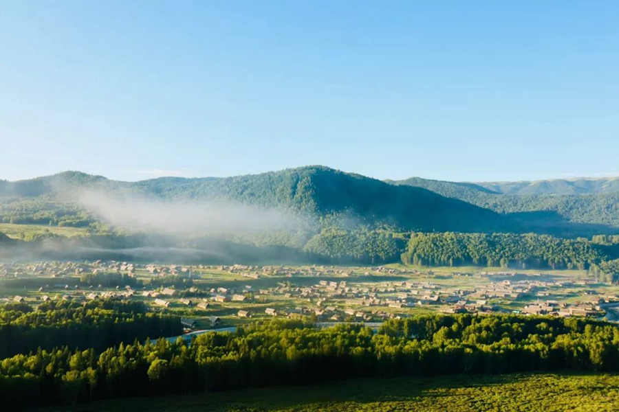 2019年7月14日,新疆阿勒泰。清晨时分的禾木村。作者:风景