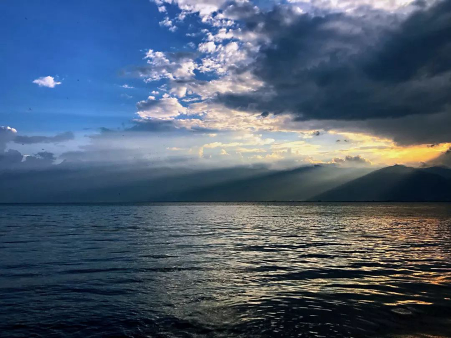 2019年9月19日,云南大理。夕阳的金光勾勒出苍山的轮廓,为洱海增添了姿色。作者:马