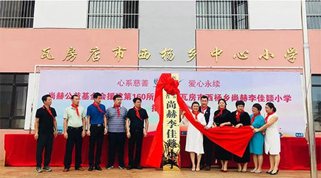 9月11日,李佳燚寰宇大使在自己的家乡辽宁省瓦房店市通过尚赫公益基金会援建第160所小学:辽宁省瓦房店市西杨乡尚赫李佳燚小学。25年来尚赫“心系慈善·爱心永续”,为求学的孩子们插上梦想的翅膀,温润流淌,川流不息。