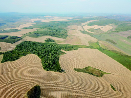 牧民高某说:“农场的人每年都转着圈开地。新开的地里还有草根草皮,种几年粮食就看不到草根了。”