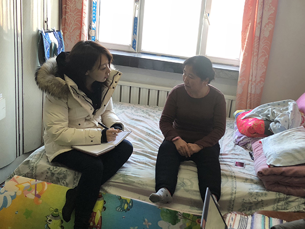 2019年1月,赵丹丹在吉林省通化市采访煤矿企业困难职工家属