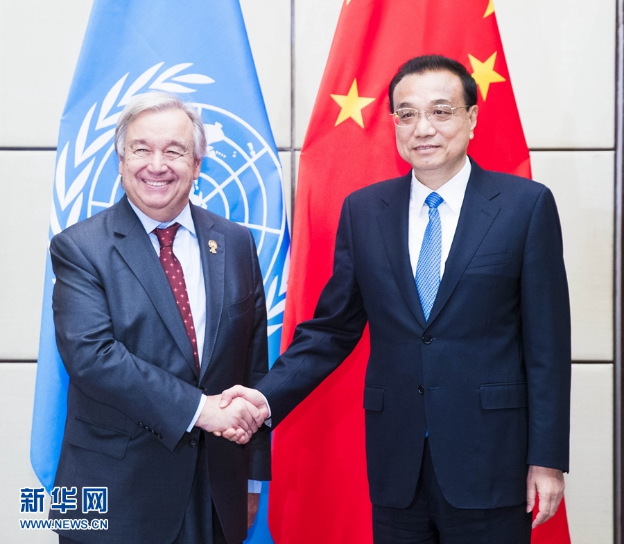 李克强表示,当前国际形势错综复杂变化,中国作为联合国安理会常任理事国,将继续坚定维护多边主义,维护以联合国为核心的国际体系,维护以国际法为基础的国际秩序。中方愿深化同联合国的合作,支持秘书长先生的工作,同各方一道落实好2030年可持续发展议程。在应对气候变化问题上,中国将承担作为发展中国家应尽的国际责任和义务,遵循共同但有区别的责任原则,同国际社会一道全面有效落实《巴黎协定》,促进绿色、低碳和可持续发展。