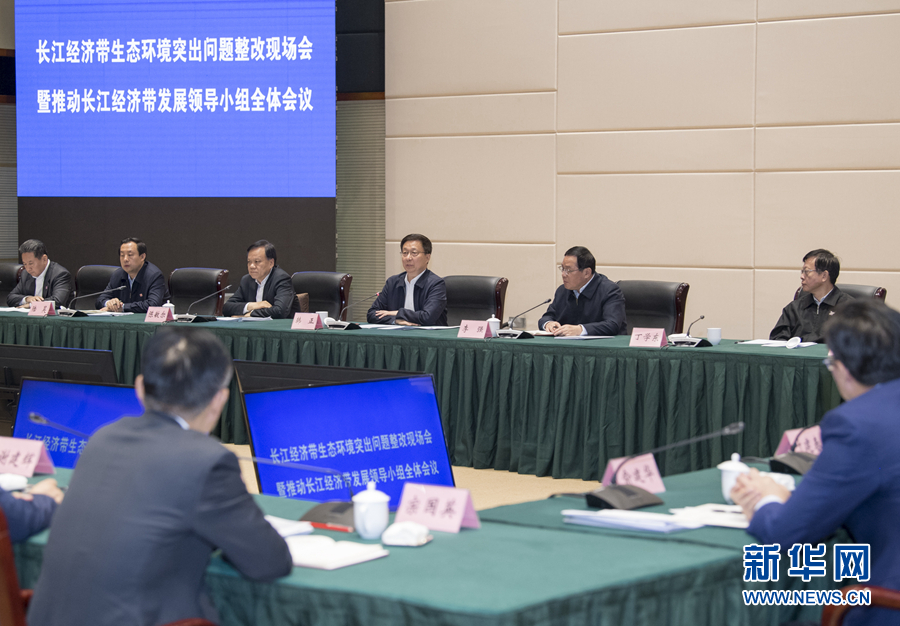 11月12日,中共中央政治局常委、国务院副总理、推动长江经济带发展领导小组组长韩正在安徽马鞍山市主持召开长江经济带生态环境突出问题整改现场会暨推动长江经济带发展领导小组全体会议并讲话。 新华社记者 高洁 摄