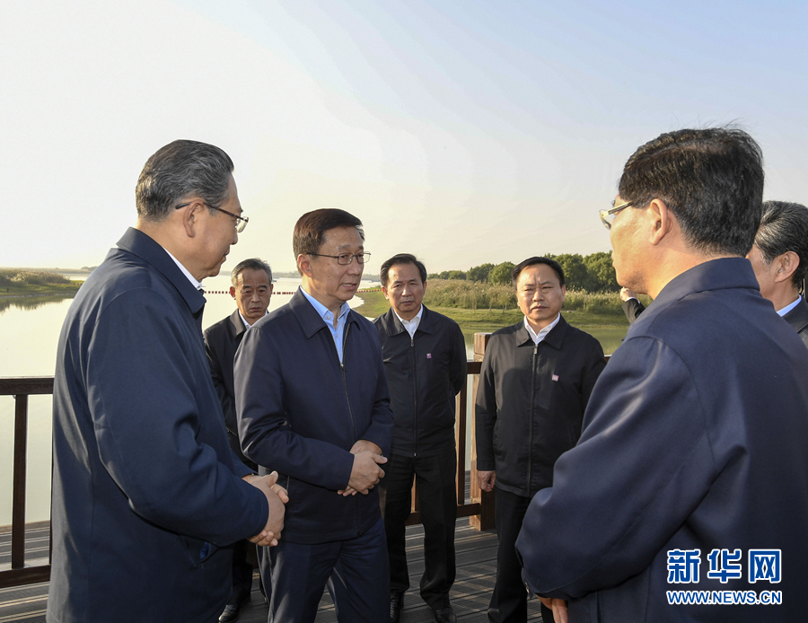11月12日,中共中央政治局常委、国务院副总理、推动长江经济带发展领导小组组长韩正在安徽马鞍山市主持召开长江经济带生态环境突出问题整改现场会暨推动长江经济带发展领导小组全体会议并讲话。这是11日,韩正到马鞍山市薛家洼,听取区域生态环境综合整治情况,询问取缔非法码头、治理企业污染等措施进展。 新华社记者 高洁 摄