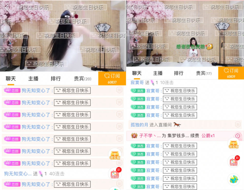 (《祝你生日快乐》诗朗诵弹幕截图 来源:虎牙直播)
