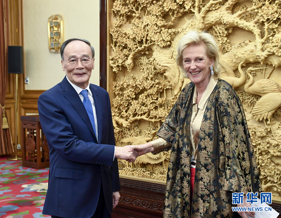 11月18日,国家副主席王岐山在北京中南海会见比利时国王代表、公主阿斯特里德。 新华社记者 高洁 摄