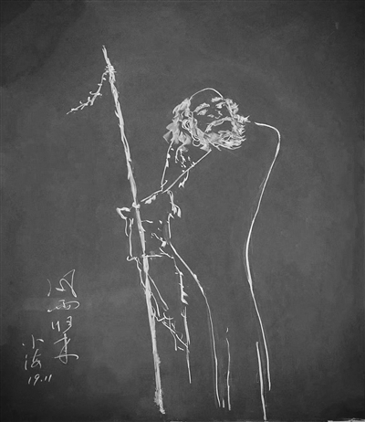 朱中海,扬州高等职业技术学校基础教育部主任、数学教师。今年57岁的他,已教了35年数学。扬子晚报记者昨日找到朱老师,看到了他去年和今年“创作”的粉笔画。之所以要用“创作”这个显得正式的词语,因为记者眼里的这些粉笔画,虽寥寥数笔,却鲜活灵动,宛如艺术品。没有一定的功力,仅仅靠一些数学上的曲线,是无法完成的。