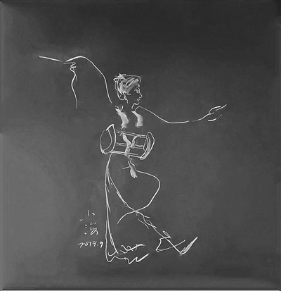 扬子晚报记者注意到,这些用“数学语言”绘成的粉笔画,有修长的女子,有年迈的老人,有顽皮的孩童,有淘气的小猫;从动作上看,有的在远望,有的在赏花,有的在舞蹈,有的在拉琴,有的在采摘,有的在打球,有的在观察小虫;从色彩上看,有的只有白色或粉红色一种颜色,有的有两种颜色,但不超过三种颜色。无论是一种颜色还是有限的两三种颜色,作品都生动传神,几条柔和的曲线稍作组合,寥寥数笔,就赋予了作品生命力,显示了作者娴熟高超的绘画技巧。每幅画的角落,有的还写上了“童趣”、“采摘”、“风雨归来”、“运动美”的标题,每一幅画都署名“小海”,行书字体也和画面一样流畅灵动。年近花甲的朱老师以“小”自称,体现了他率真谦虚的性格和对工作的态度。