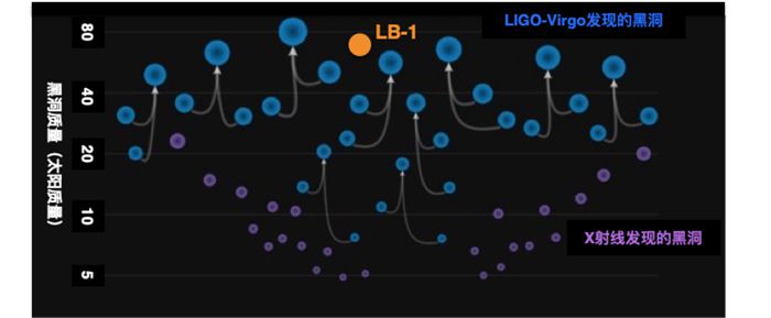 图为LB-1和引力波并合事件、X射线方法发现的黑洞的质量分布 国家天文台供图