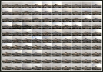 拍摄进行到3个月多后,周健仕把照片整理成专题,命名为《杭州空气百日祭》。在那幅作品当中,参照物和背景基本相同,唯一变化的是清晰度:除了少数几张有蓝天白云,几乎所有的照片都是灰色的。