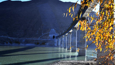 绒乡雅鲁藏布江特大桥位于西藏山南市桑日县绒乡附近,全长4615米,是首座跨越雅鲁藏布江的声屏障特大桥,也是拉林铁路全线第二长的特大桥。声屏障采用铝合金吸声板,高2.4米,其覆盖的有效区域平均降噪30分贝以上,为拉林铁路沿线各族同胞筑起一道绿色屏障。